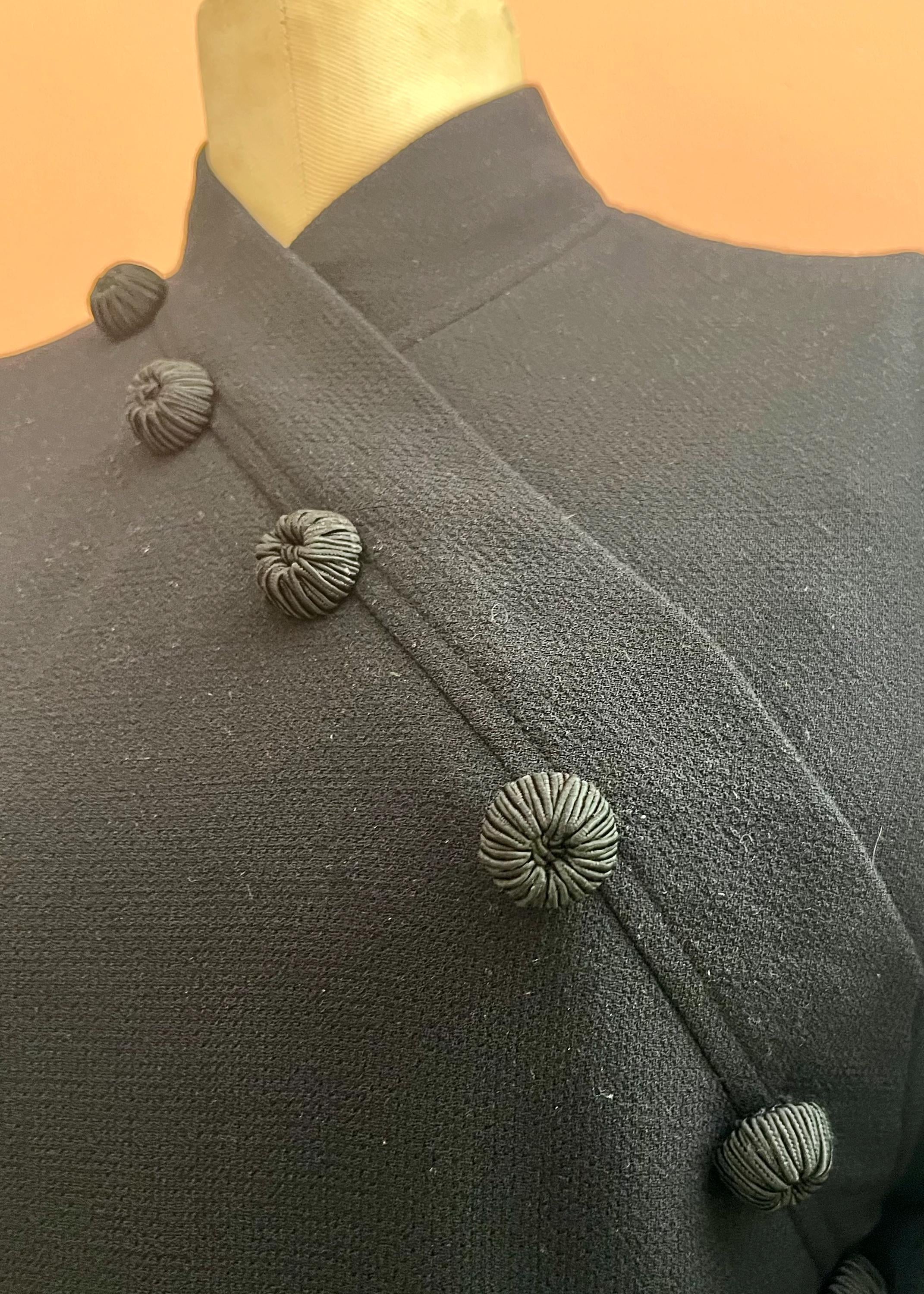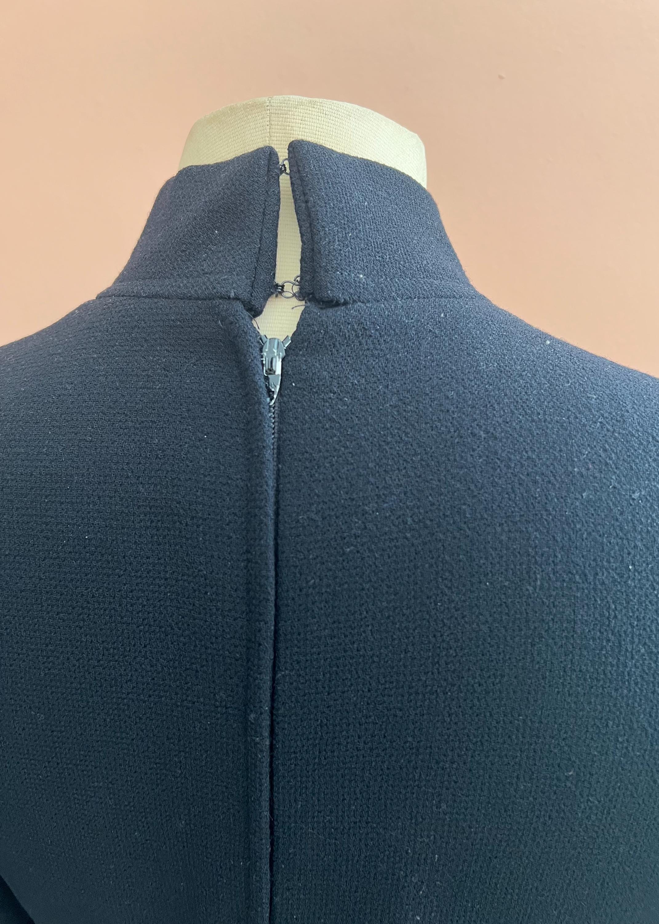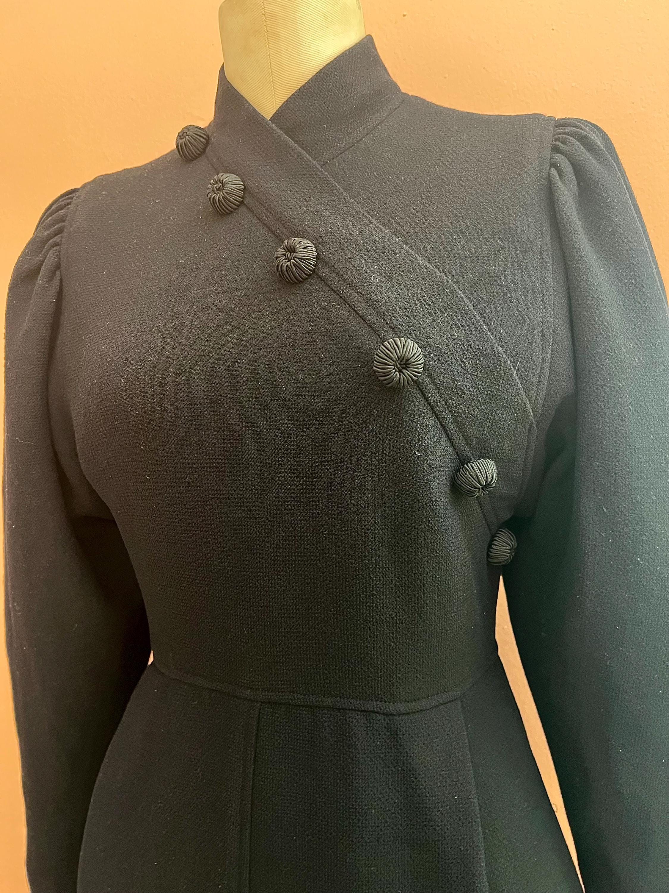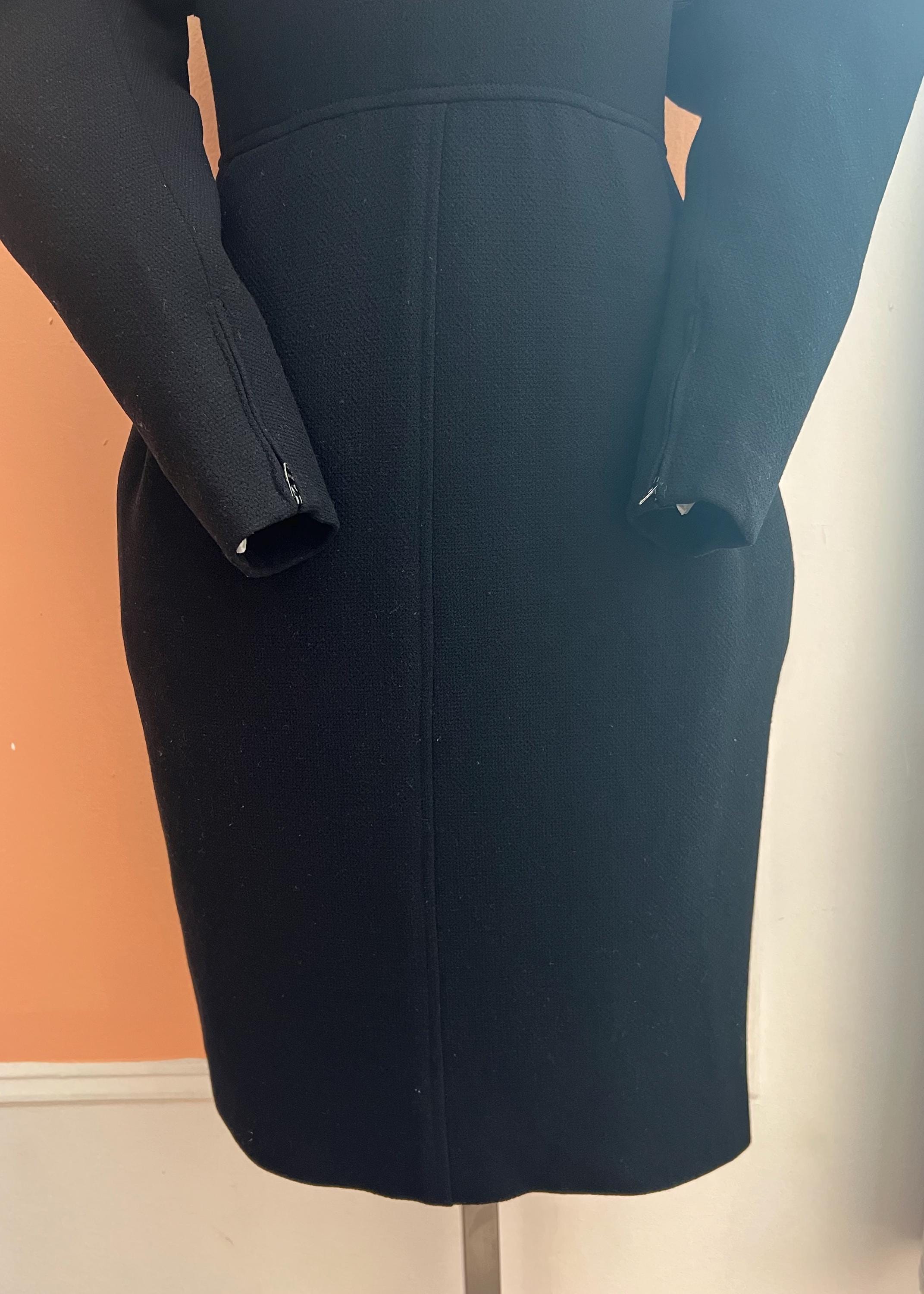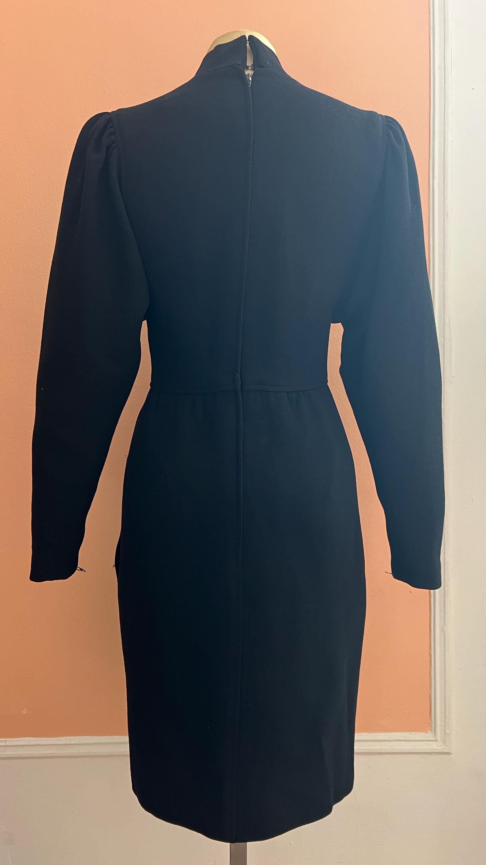 A timeless, architecturally tailored dress by iconic designer Oscar de la Renta. Circa late 1990s, early 2000s, this piece features a minimalist sheath silhouette elevated by refined details, including an asymmetrical neckline, decorative vintage cord thread buttons on bust, zippered cuffs, functional pockets, and fully lined. The fabric is substantial and structured, with the feel of heavyweight linen or wool-linen blend, giving dress a sculptural drape that holds its form beautifully. Finished with hidden back zipper and interior neck clasps, this garment reflects the impeccable craftsmanship associated with late 90s Oscar de la Renta collections. Due to its construction details and tag style, this dress may be a designer floor or showroom sample, making it a rare and collectible piece. Perfect for collectors, minimalist, or anyone drawn to understated luxury with impeccable tailoring. Please feel free to ask questions about this piece. Thank you for making a conscious decision to shop sustainable pieces of art!!