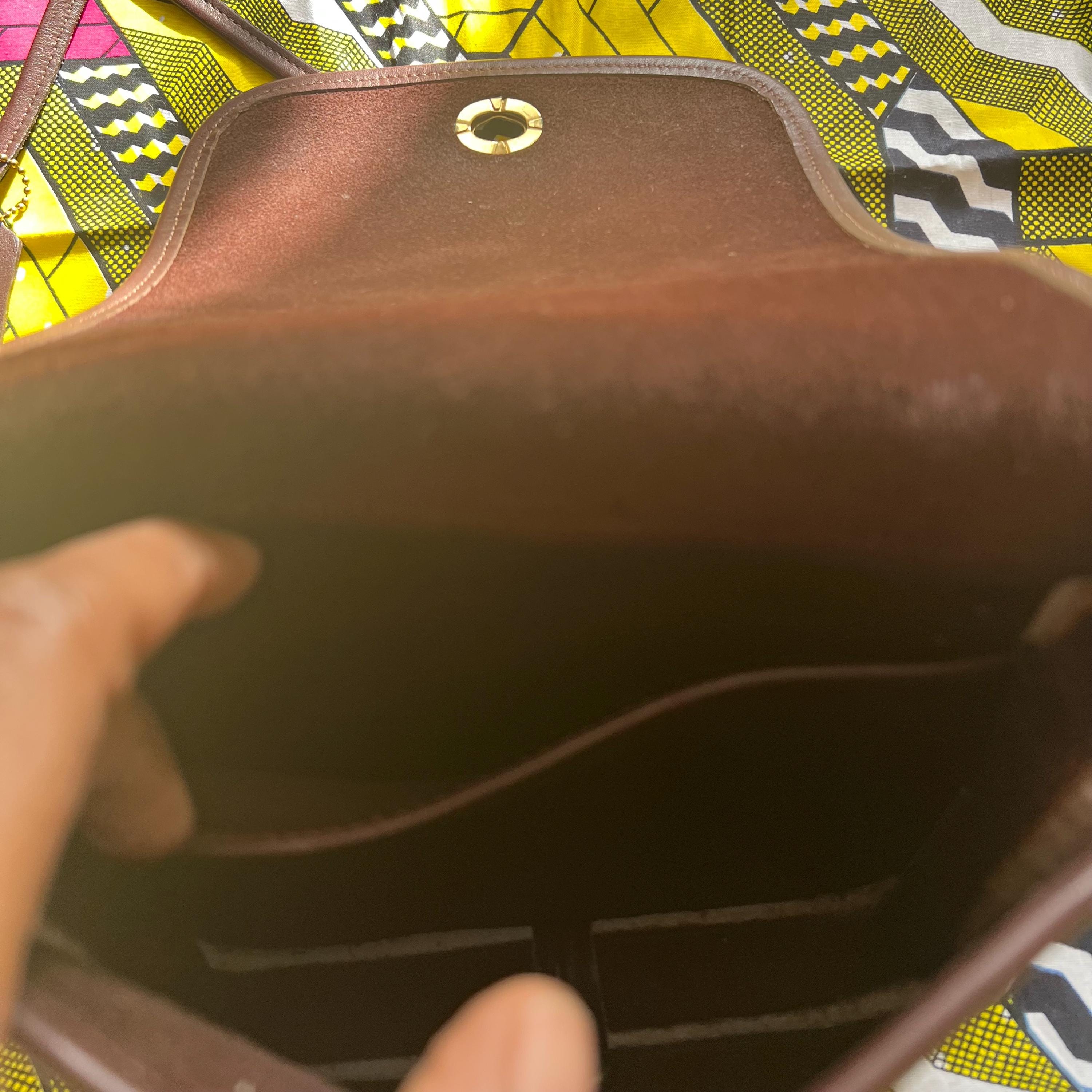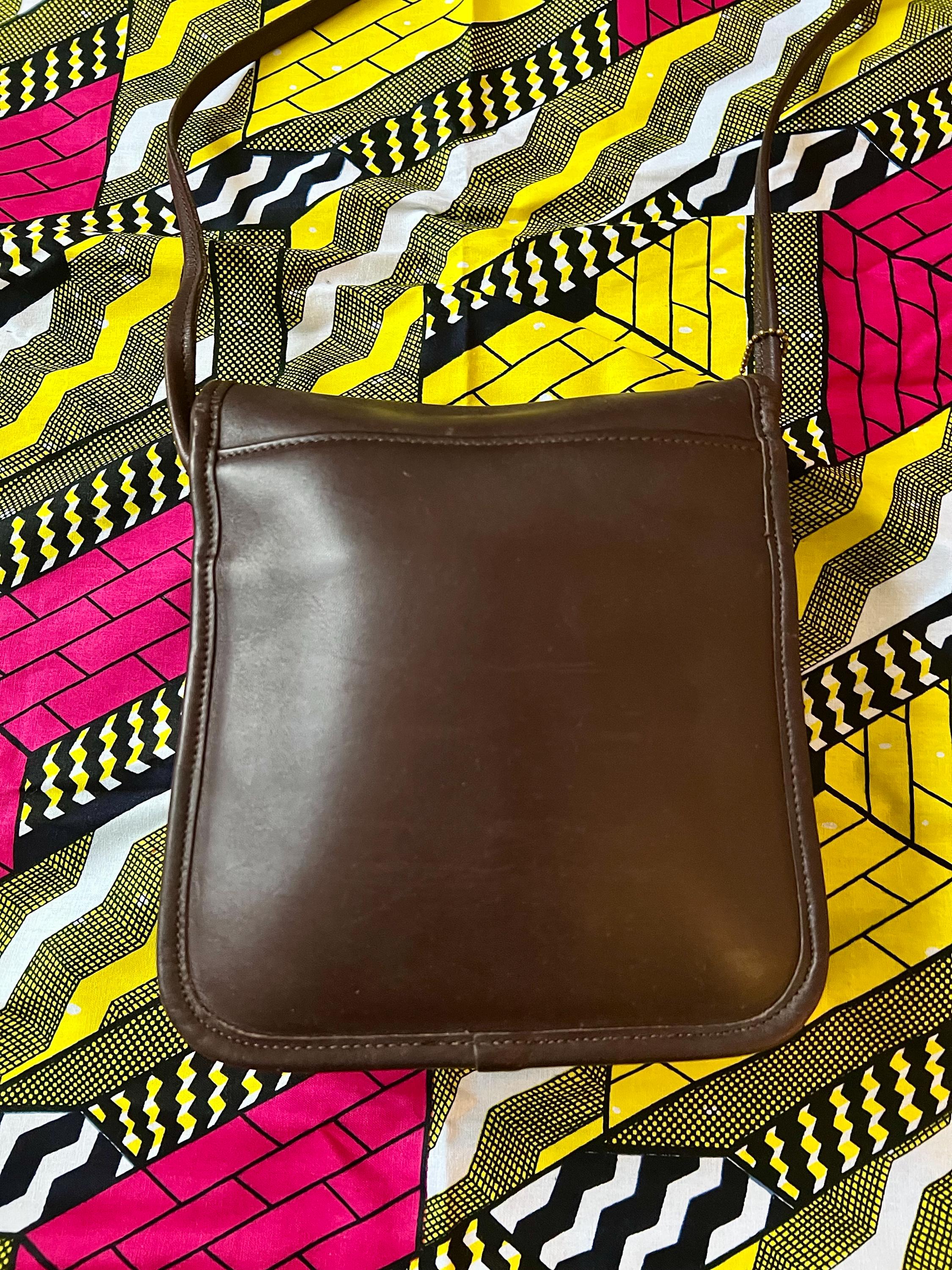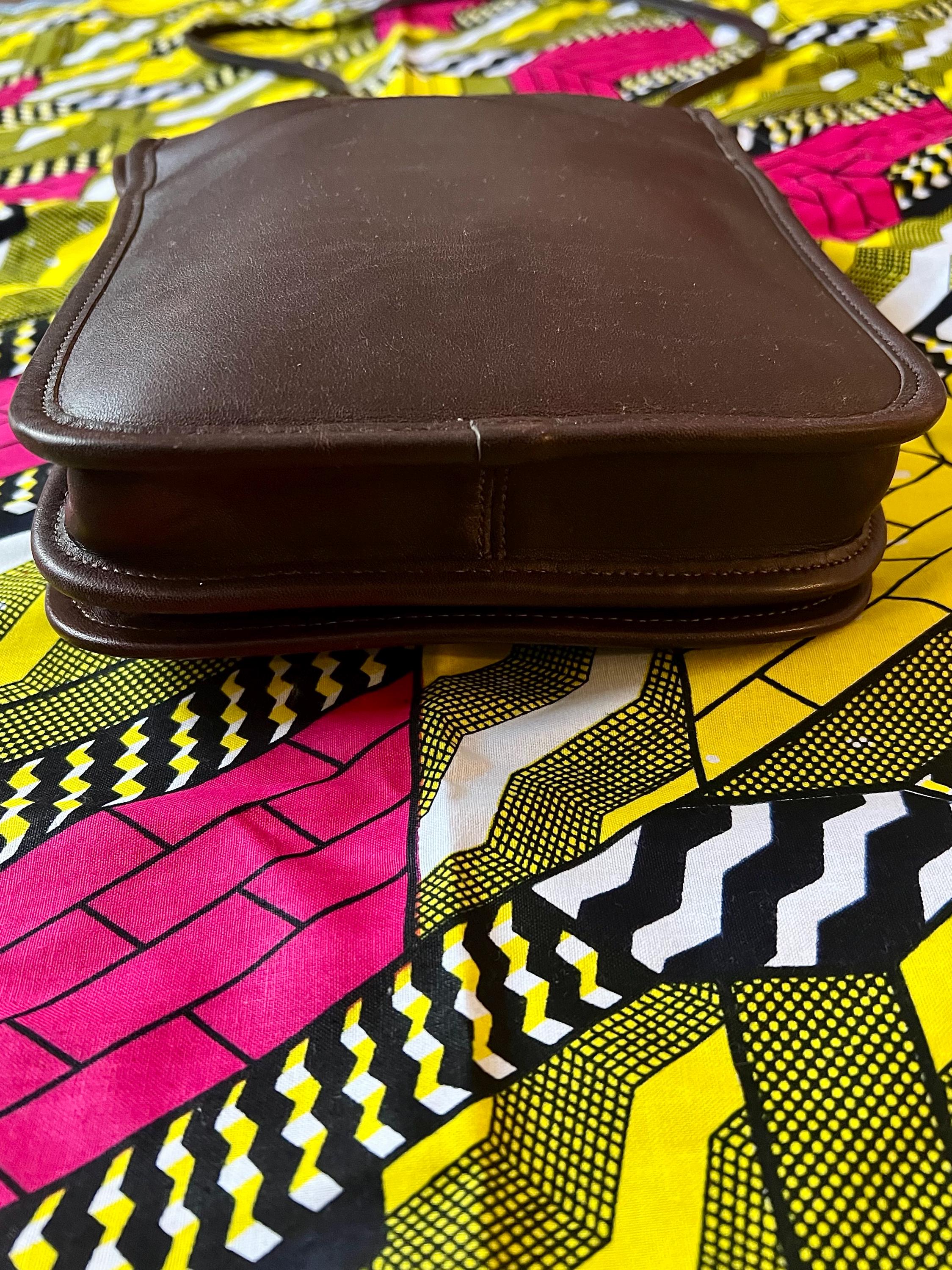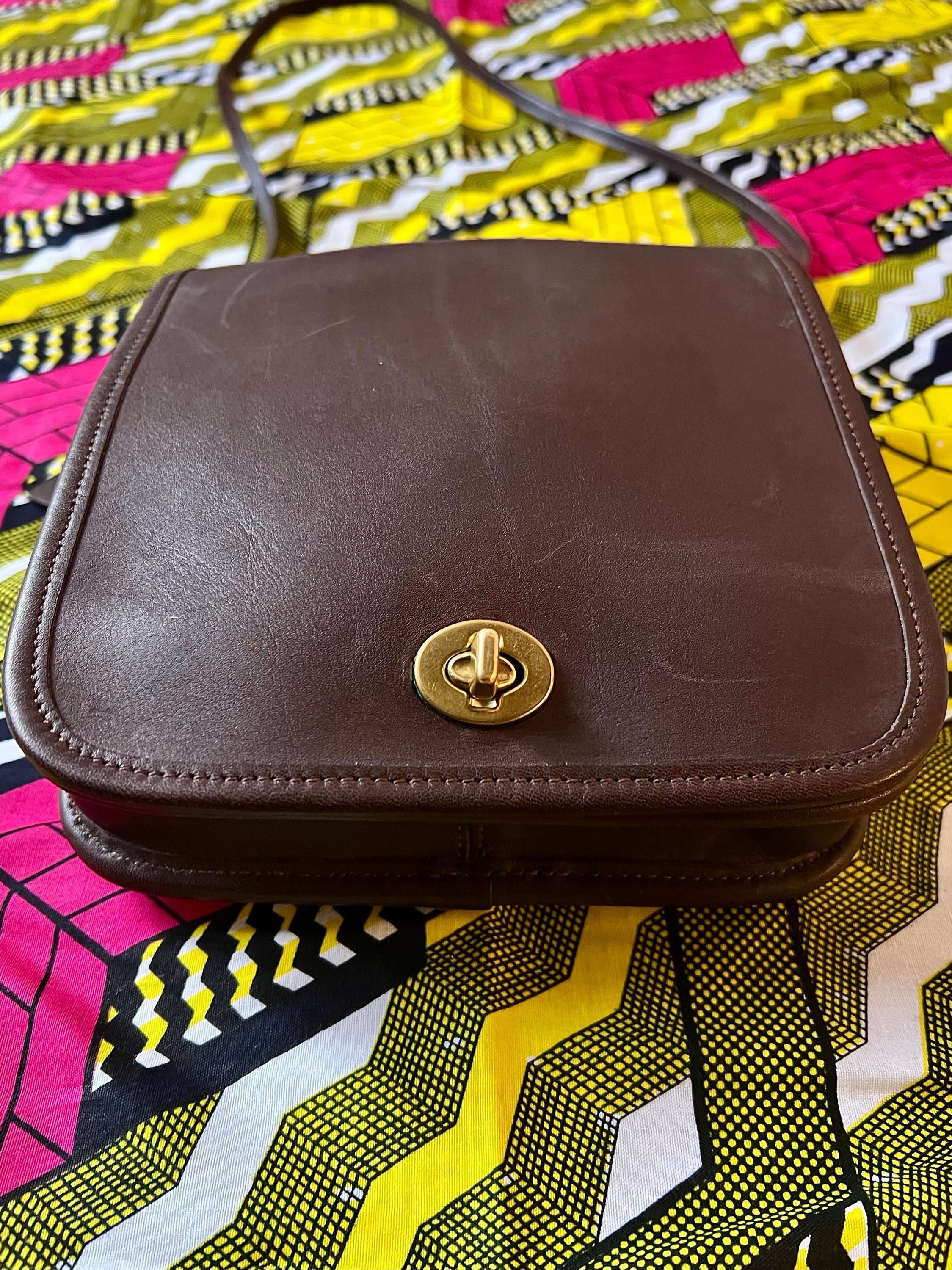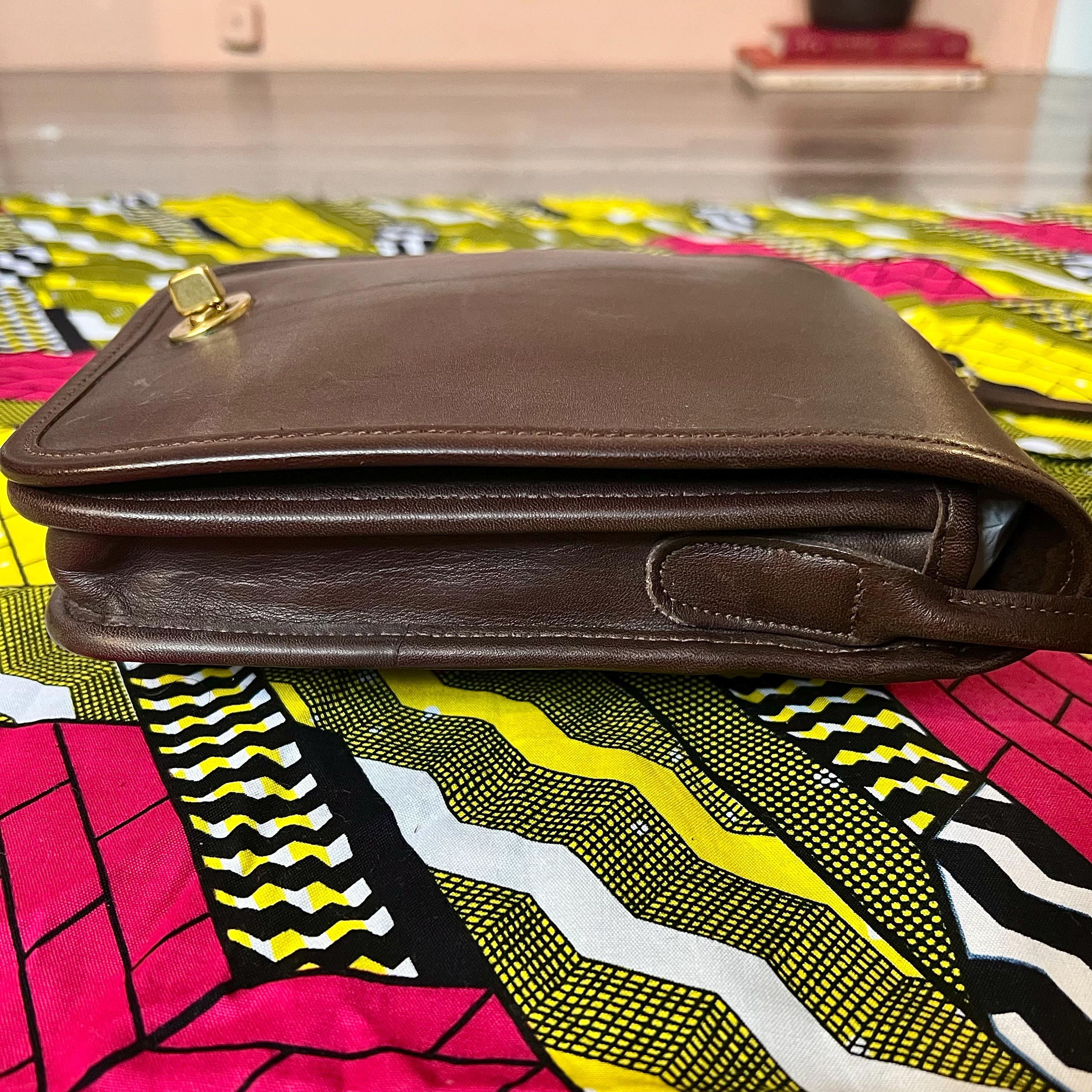 This is an authentic Vintage Coach Brown Leather Crossbody Bag, crafted during Coach's golden era of American leather goods. Made from thick glove-tanned leather with a timeless silhouette, this piece embodies effortless everyday luxury. Featuring Coach's iconic solid brass turnlock closure, a structured yet soft body, and an adjustable crossbody strap, this bag is both practical and enduring. The leather has developed a beautiful natural patina that only comes with age and quality craftsmanship. As a previously owned vintage item, this bag has been carefully cleaned and conditioned to restore and preserve its original appearance while maintaining its authentic character.