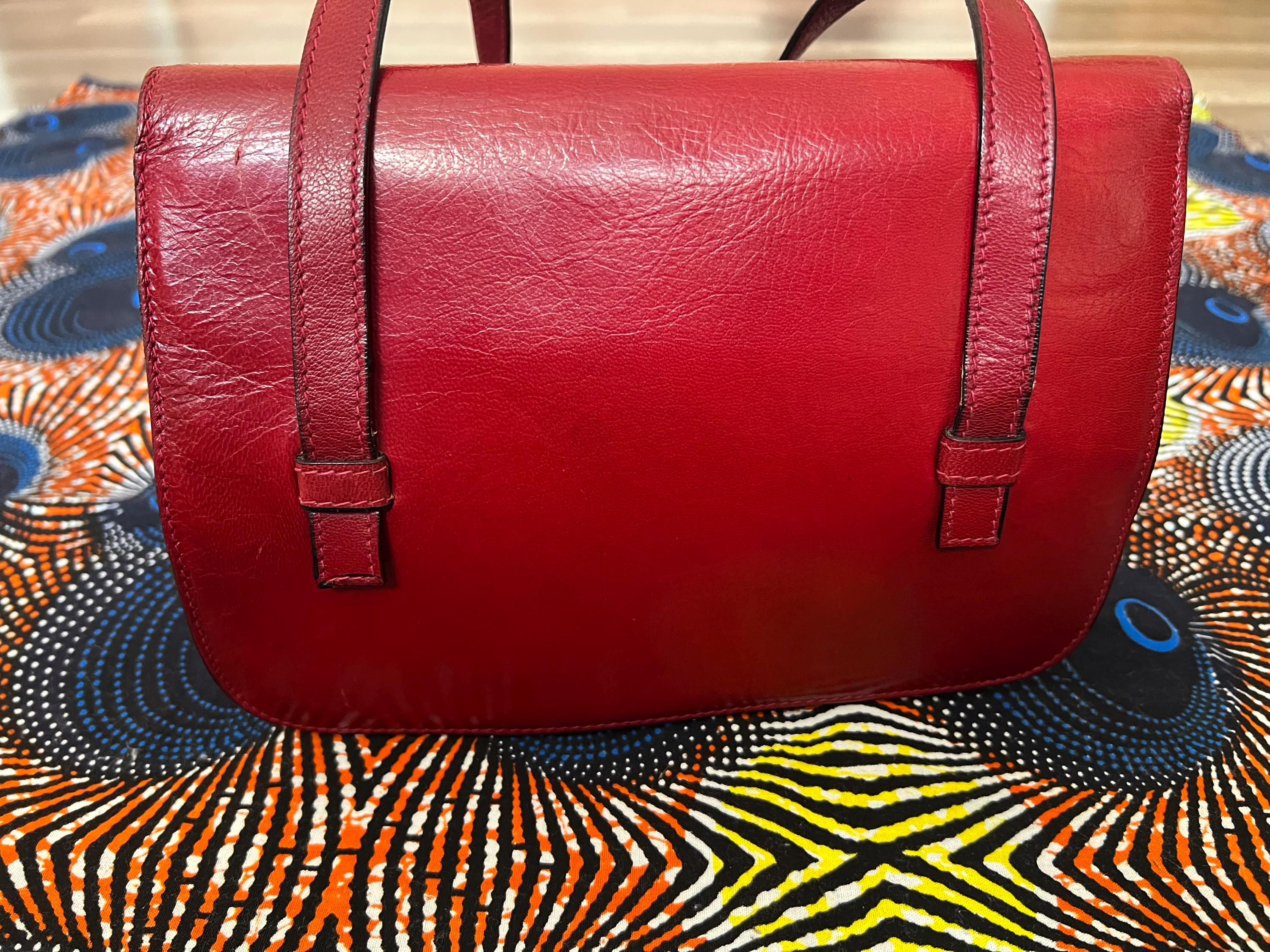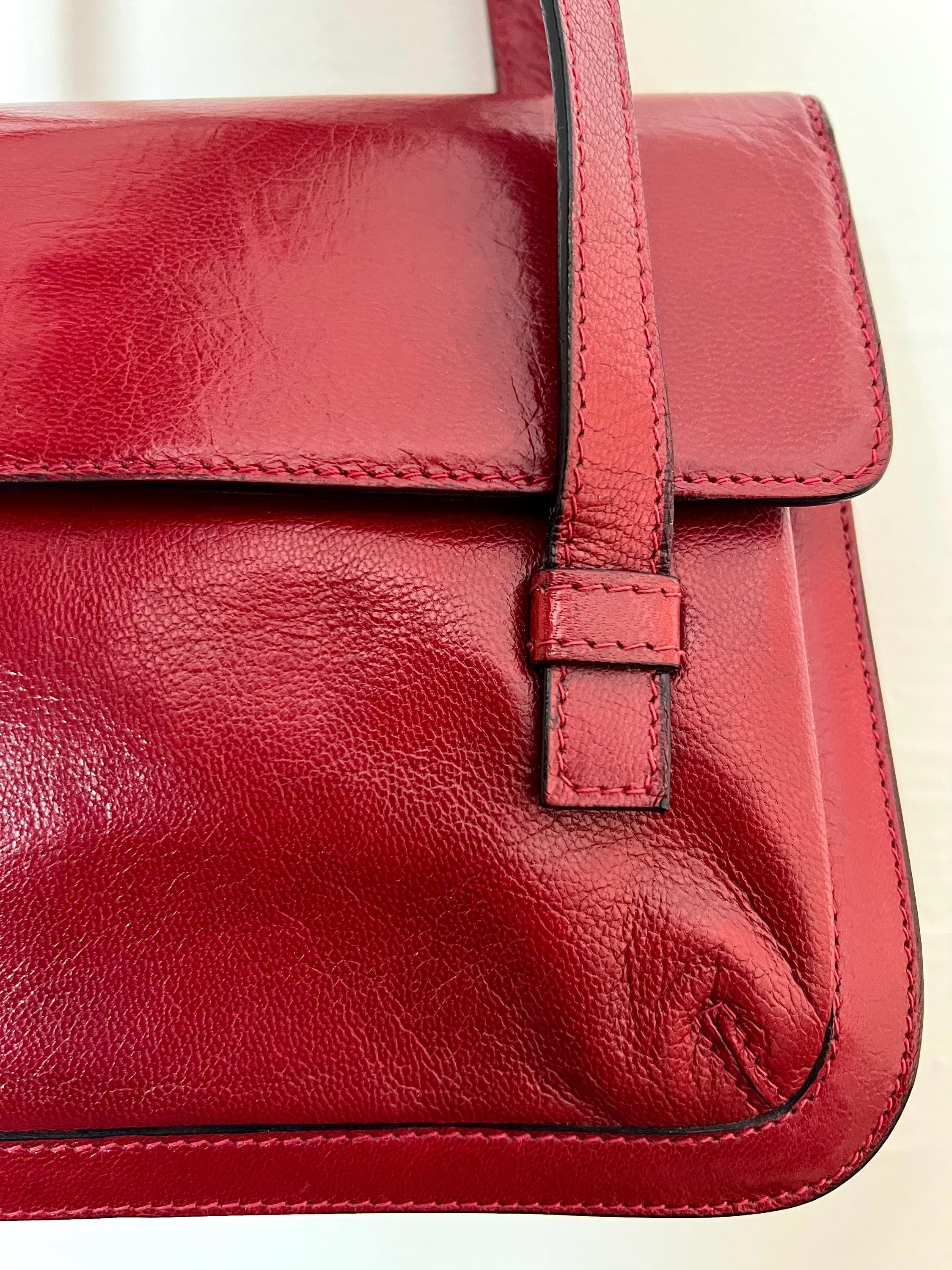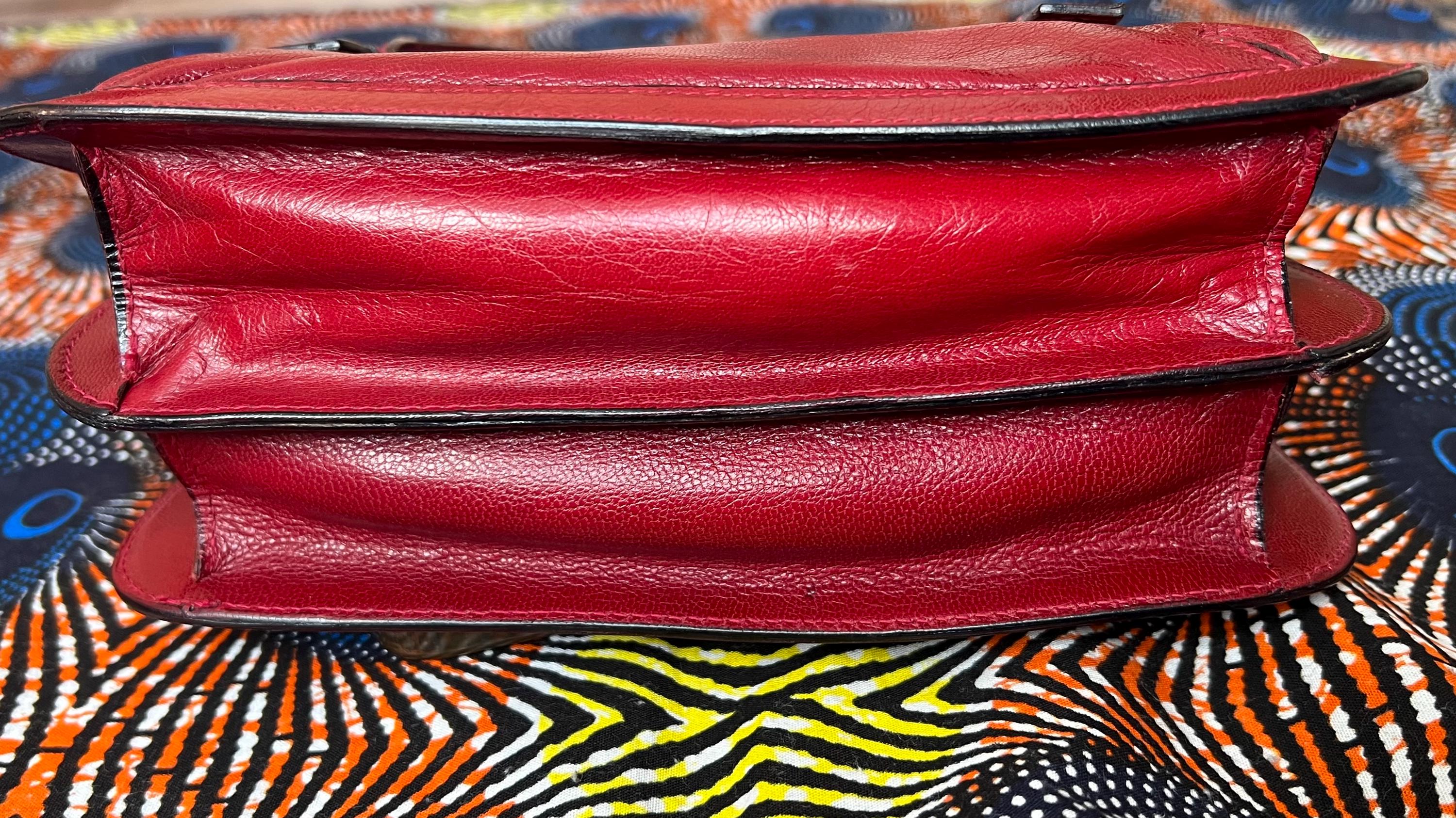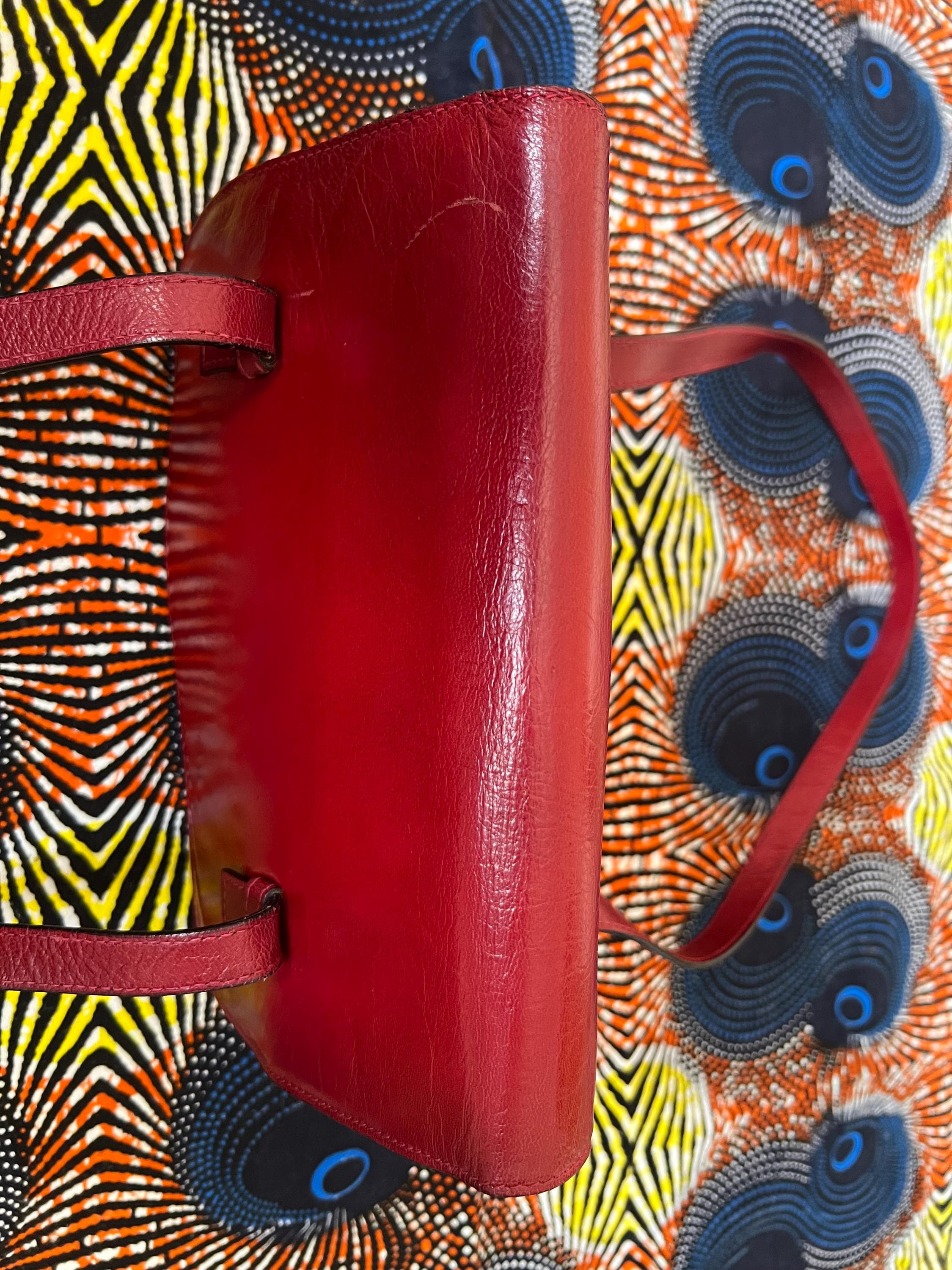 Elevate your everyday look with this vintage red leather shoulder bag, a timeless piece crafted in Italy from rich, supple leather. Its structured silhouette, fold-over flap, and long shoulder straps create an effortlessly chic profile that pairs beautifully with both casual and elevated outfits. Inside, a black-lined interior with a sip pocket keeps essentials organized, while magnetic snap closure offers easy, secure access. The deep oxblood tone gives quiet luxury energy, classic and endlessly wearable.