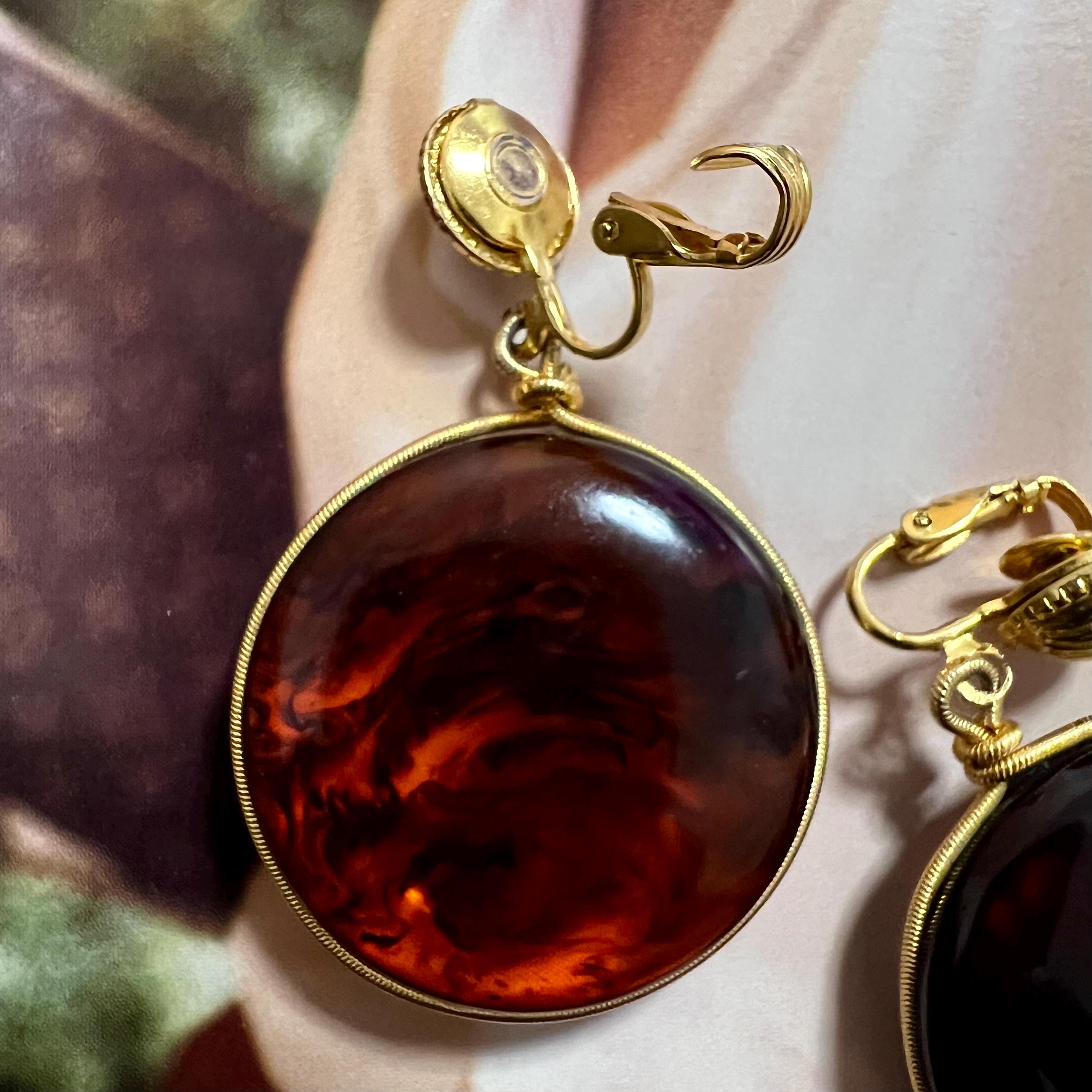 Vintage Faux Tortoiseshell Dangle Clip-on 70s Bohemian Artisan Style Earrings